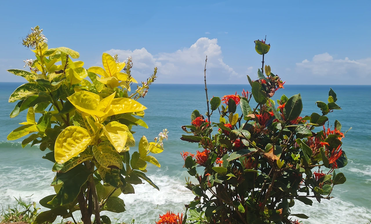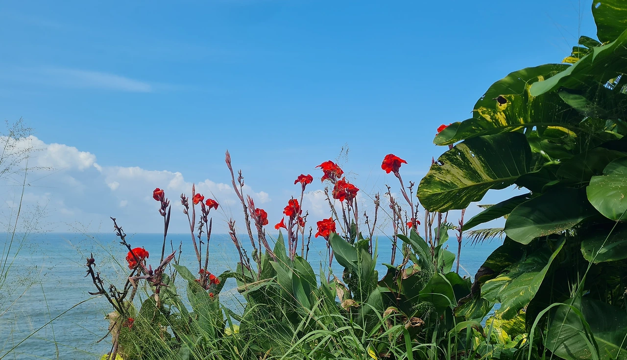 가다가 피곤하면 앉아서 쉴수 있는 공간도 곳곳에 있고 히비스커스와 이름모를 꽃들이 푸른 하늘과 바다 사이에서 아름다움을 자랑합니다.