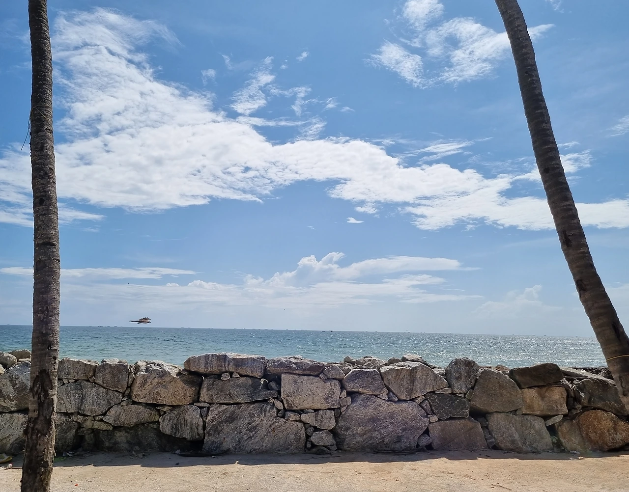 해변의 둑같이 돌을 쌓아놓은 곳에서 한 가족을 만났습니다. 알레피에서 온 다섯명이었는데 남편이 티루바란타푸람의 테크노 파크에 근무한다고 하여서 좀 놀랐습니다. 거리가 꽤 되어서 세시간 넘게 걸리거든요. 물론 WFH로 근무하고 가끔 회사에 나간답니다.ㅎ 인도가 참 좋아졌다는 생각을 하게 됩니다.