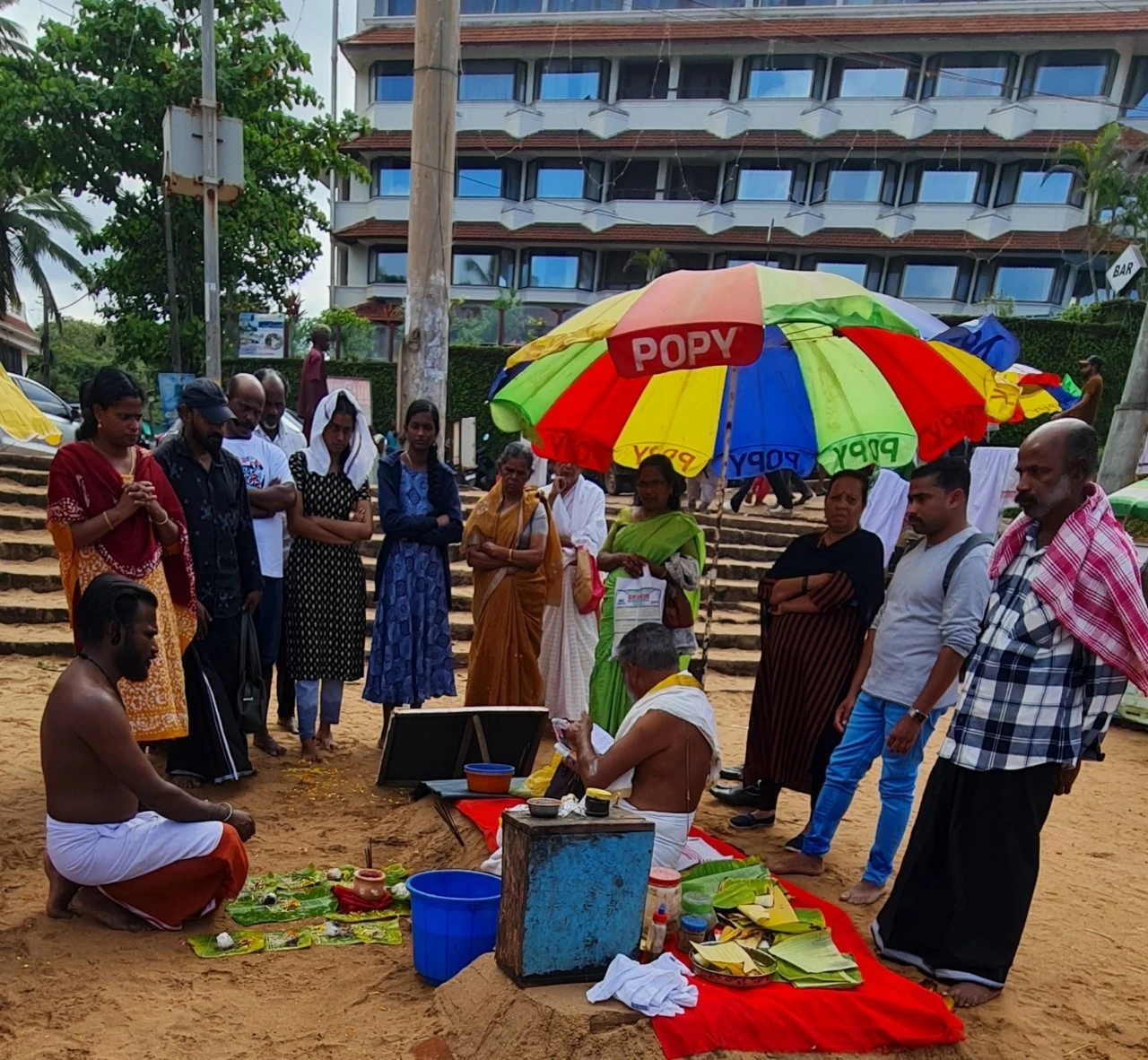 이 해변은 영험이 있는지 열명이 넘는 푸자 바바들이 진을 치고 있으면서 호객행위(?)를 합니다. 초입에서 한 잘생긴 젊은이가 웃통을 벗고 가족 친척에 둘러싸여 푸자를 하고 있었습니다. 길일이라서 뭐든 해도 좋은 날입니다.