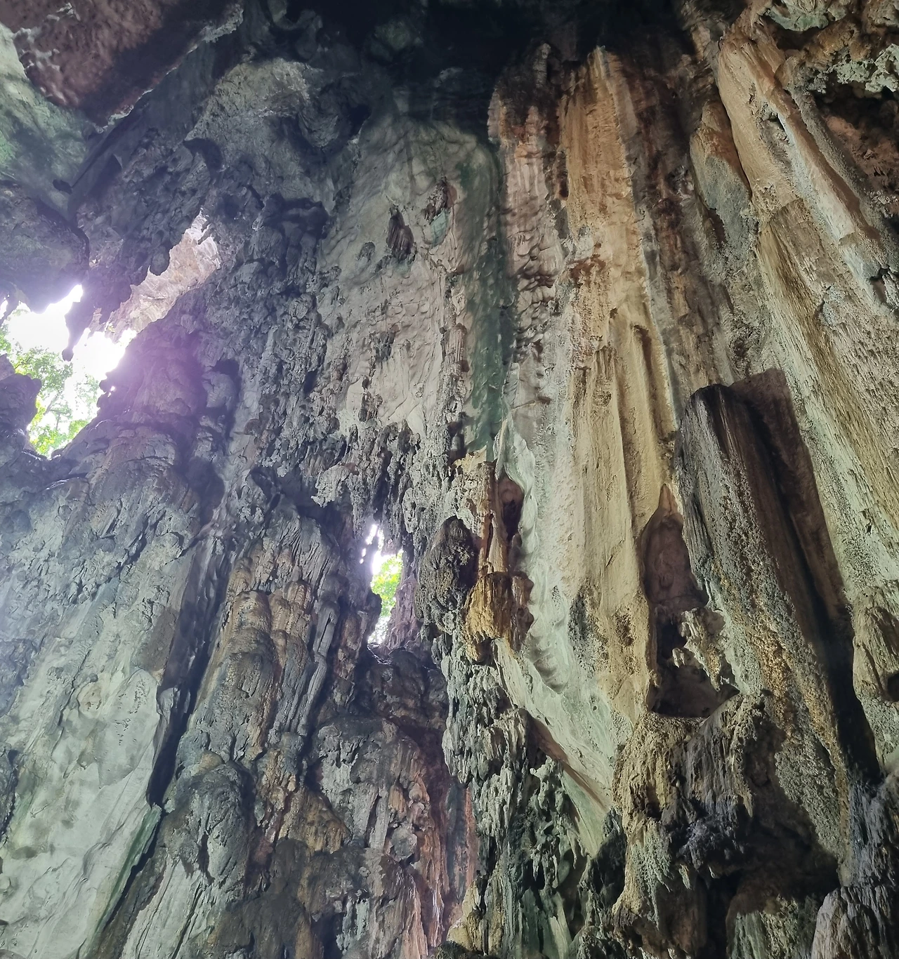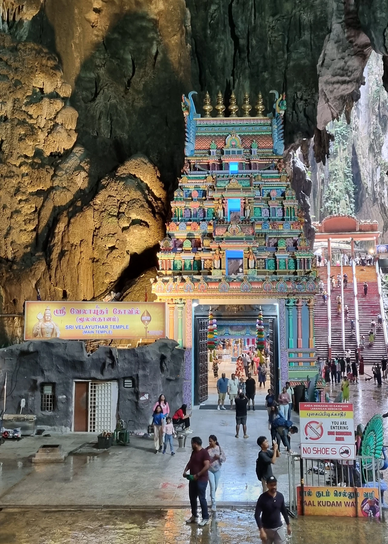 그리하여 정상에 오르자 희안한 광경이 펼쳐졌다. 인도 남부스타일의 화려한 힌두사원과 주변에 종유석들이 늘어져있고 하늘에는 몇군데 구멍이 뚫여져 있었다. 가끔씩 물이 떨어지는 것을 보면 밖에는 비가 오는 모양이었다. 자연의 경이에 말문이 막힌다... 동굴 내부의 한 사원 안으로 들어가 보시를 하고 초를 사서 공양하고 실을 하나 사서 묶어두었다.