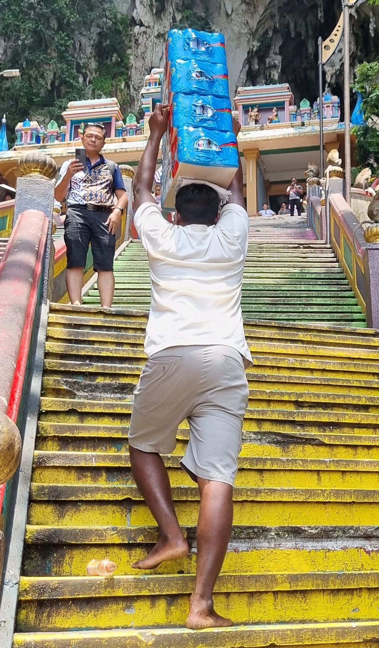 인도에서 온듯한 많은 사람들을 볼수 있었다. 입구에는 큰 하누만 신이 우리를 맞이하고 있었고 좀더 가니 무르가 신(카르티키야, 시바와 파바티 사이에서 태어난 첫째 아들, 전쟁의 신)이라고 하는 세계에서 몇번째로 큰 신상이 우리를 내려다 보고 있었다. 옆으로는 272개나된다는 울긋불긋한 계단이 우리 앞에 막아서고 있었고... 우리의 죄를 모두 헤아려보면 272개란다. 이 계단을 올라가면 죄의 사함을 받게 된다고... 그렇다면 젖먹던 힘을 다해서 올라가야지요!