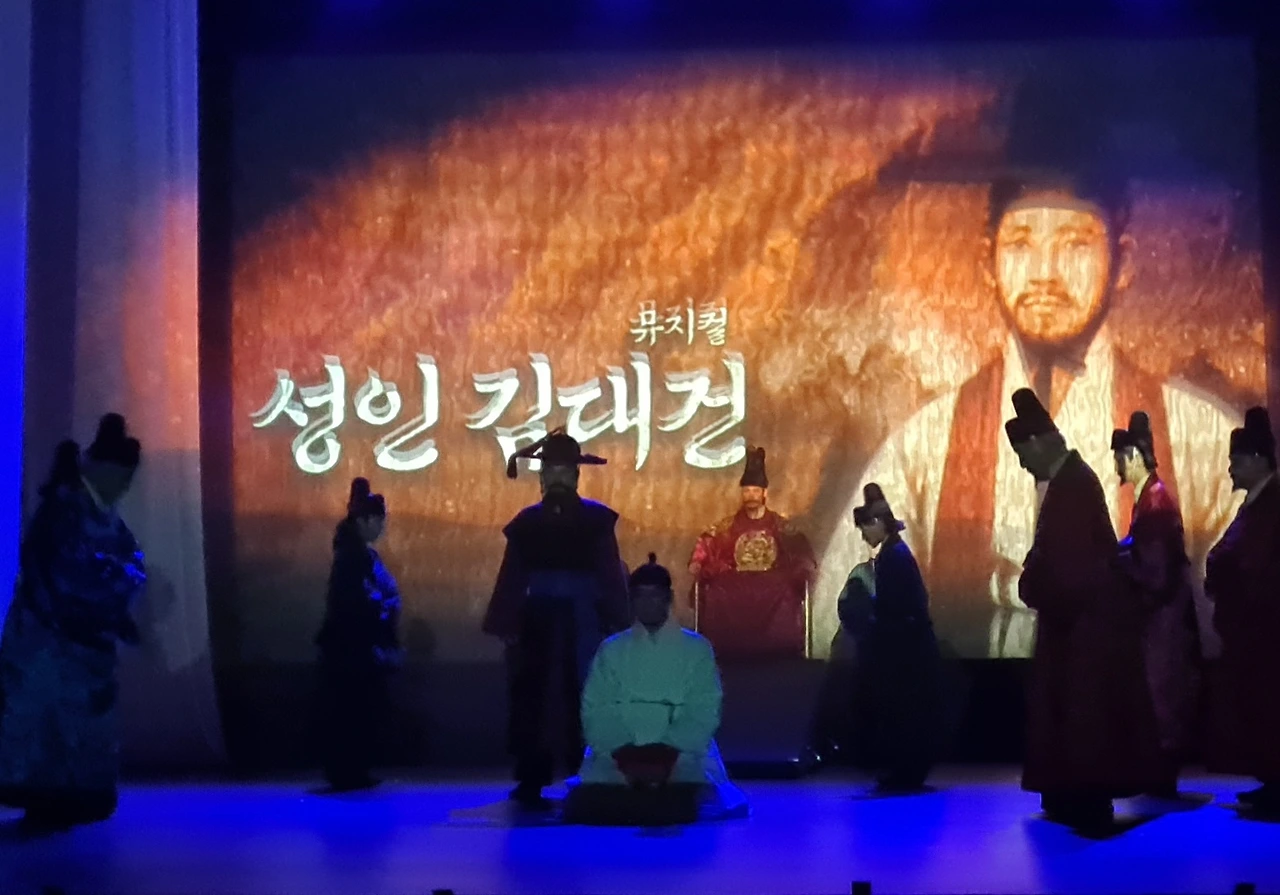 다행히도 <성인 김대건>이라는 무거운 주제에도 불구하고 뜬금없이 시대를 넘나들면서 극단 출연진들이 일상의 복장을 입고는 10년 넘게 말단역을 전전한다거나, 시니어 배우는 배역을 맡지 못한다는 고충들을 토로하고 극단 대표는 언제 돈 벌어서 대출금 갚나?를 고심하였다...ㅎ 의외의 진행이었다.