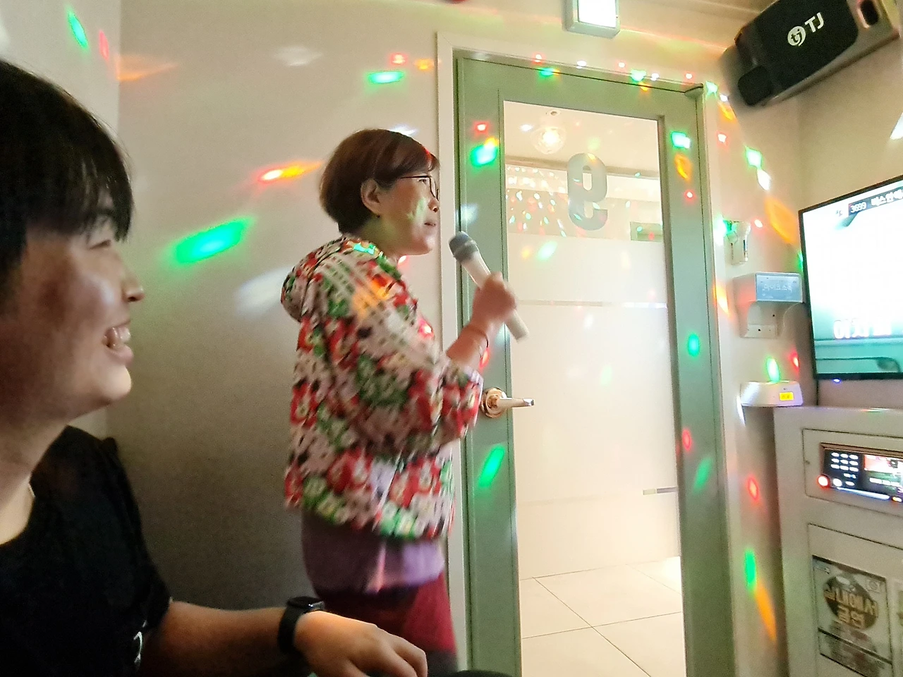 어느 날은 저녁을 일찍 먹고 노래방으로! 코인 노래방이라고 처음 가보았다. 12곡에 5000원. 오랫만에 신나는 노래를 음정도 안 맞으면서 실컷 불러제꼈다. 울아들은 노래도 잘부르는데 매너도 좋아서 오래된 팝송을 선곡하여 같이 부르도록 하였다. 웃기는 것은 남편이 부른 <발길을 돌리면서>가 만점!을 받았다는 사실이다. 사실 남편은 공인 음치인데... 내가 옆에서 소리를 높여 따라 불렀는데 역시 노래방은 목소리가 커야 제격인가보다.