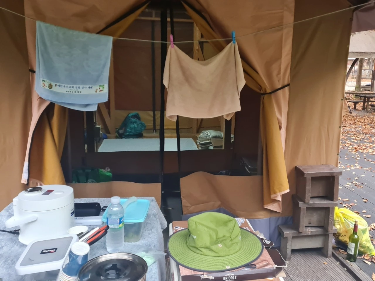 지인이 여행을 워낙 잘 다니다보니 필요한 모든 것을 다 구비해 왔었다. 낙타털이불과 두터운 침낭을 모두 새것으로 준비해왔고 의자와 쿠킹하는 데 필요한 부스터와 석탄, 전기 밥솥과 가스버너등 모든 것을 다 들고 왔기에 우리는 편한 캠핑을 즐길수 있었다.