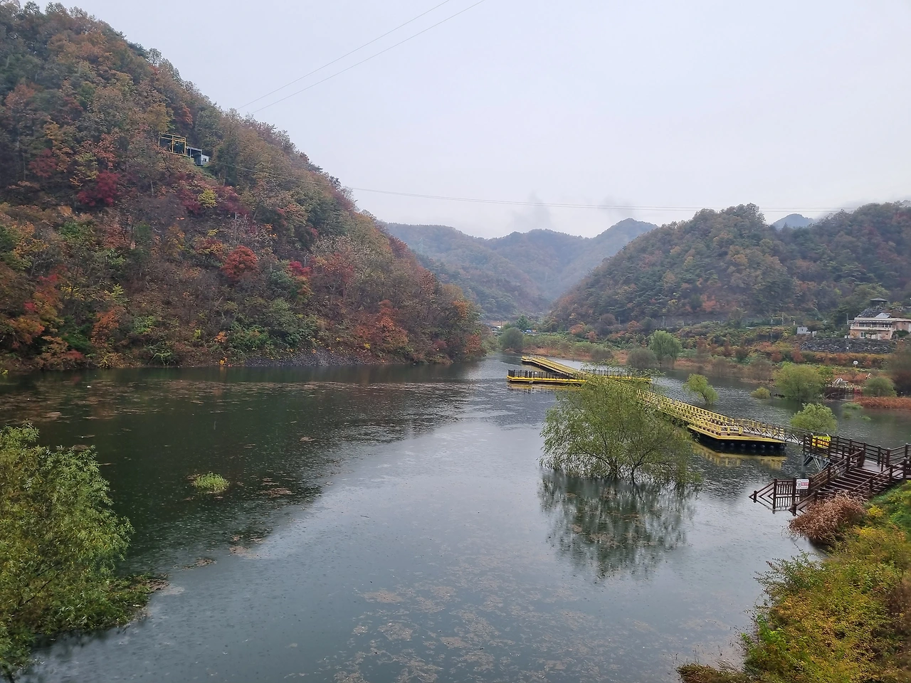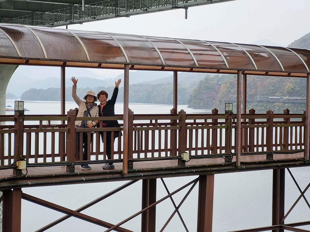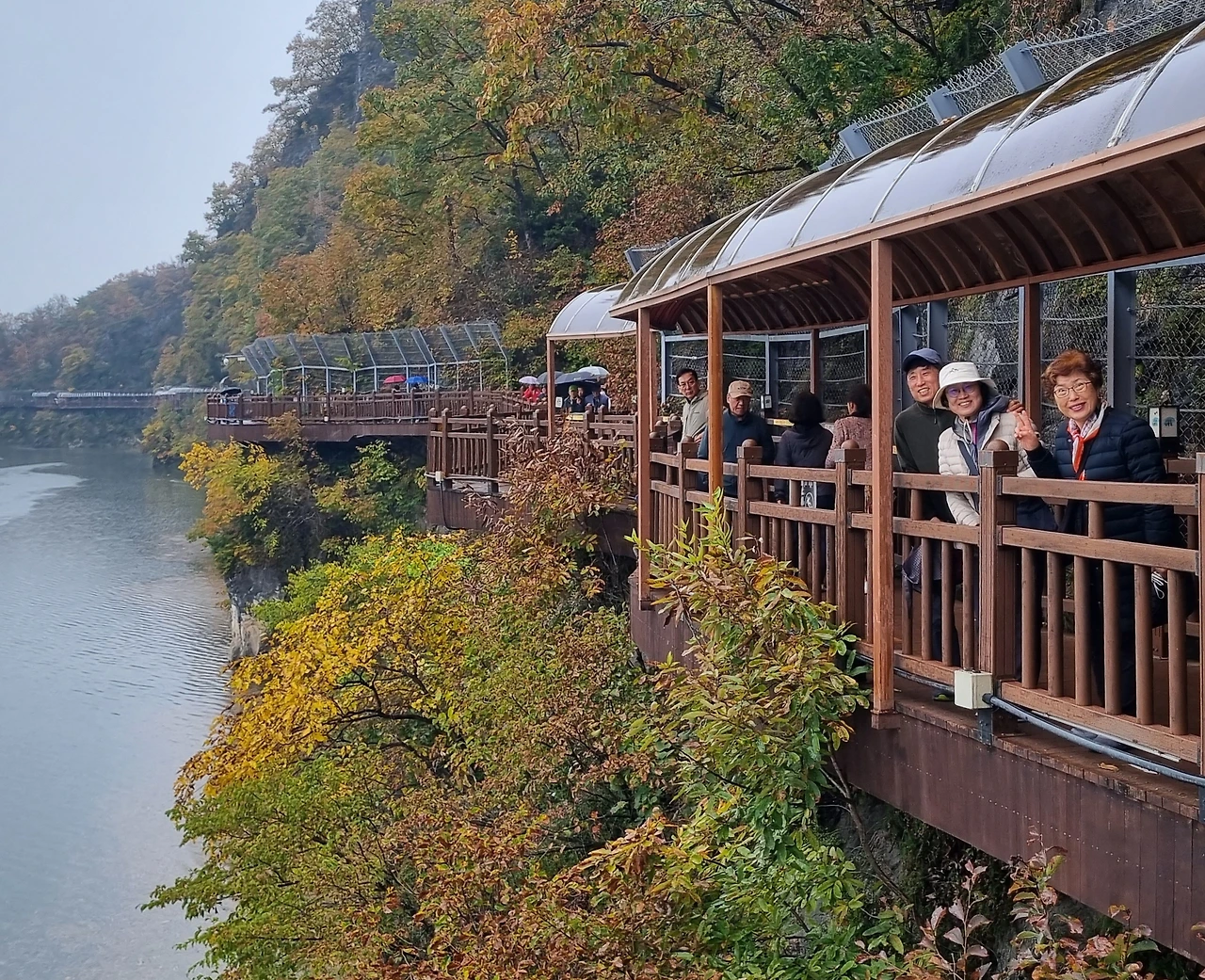 가는 길에 굽이굽이 되어 있는 단풍이 물든 도로를 위에서 바라보면서 사진을 찍을수 있도록 해 놓았는데 지인은 고소공포증이 있다고 해서 내가 꼭 잡고 다녔다.