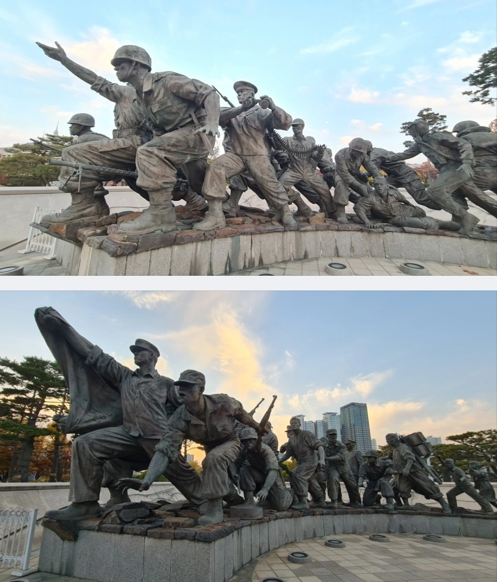 목요일 오전, 입시생들이 수능으로 한참 씨름을 하고 있을 즈음에 한갓진 전철을 타고 용산 전쟁기념관에 다녀왔습니다. 입구부터 멋진 조형물들이 우리를 맞이합니다.