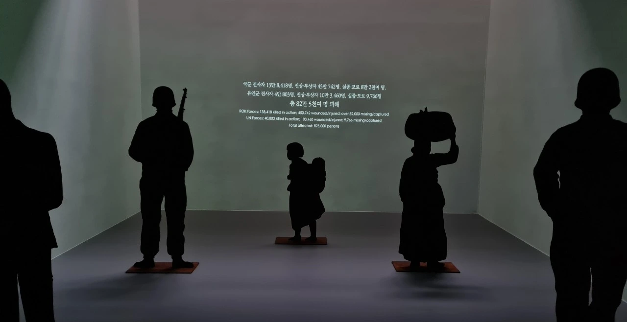 전진하는 우리 군인들과 피난민들의 조형물이 아주 리얼하다