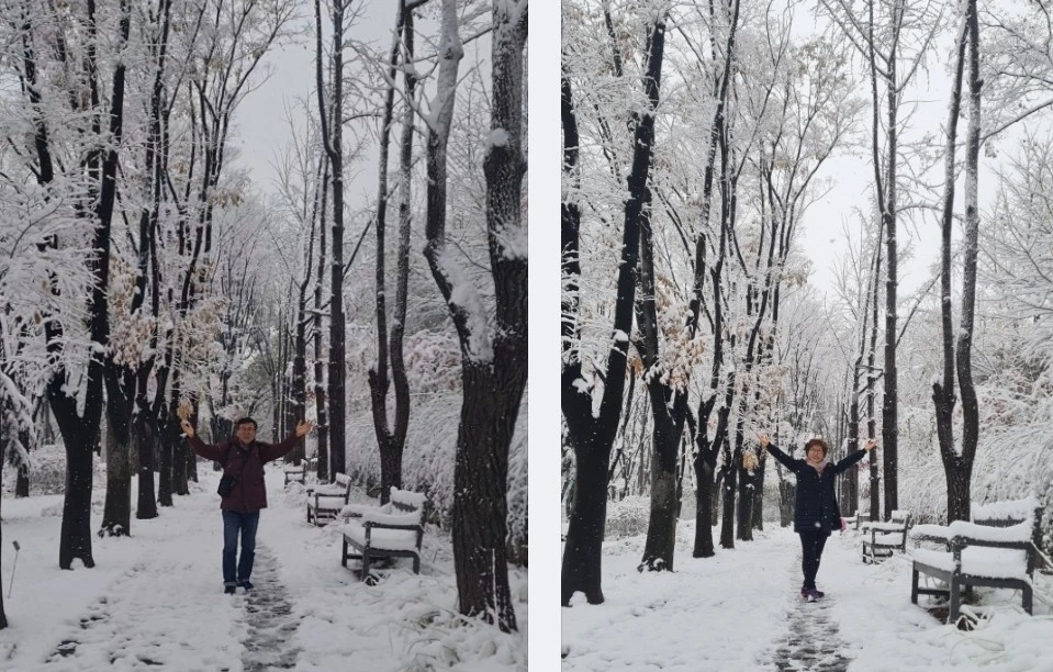 오늘은 눈이 내리고 많이 춥다고 해서 지인부부와의 약속을 다음 주로 미루고 남산에 올랐습니다. 사진을 찍고자 했거든요, 과연! 펄펄 내리는 함박눈은 온 세상을 신비롭게 덮었습니다. 미끌어질까봐 등산화를 야무지게 신고 왔기에 온전히 하얀 눈을 즐길수 있었네요.