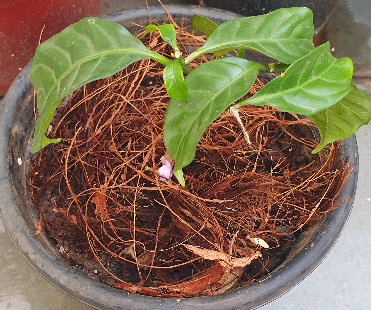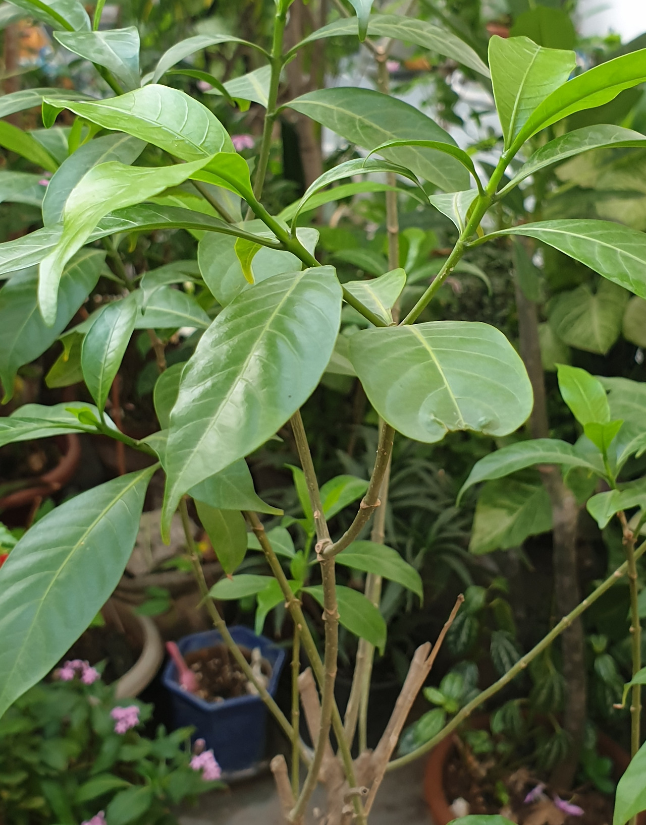 이번 몬순 동안 성장을 잘 할 듯해서 흙에 심어두었지요. 그리고 또 한 가지 꺾어서 물꽂이 해두었습니다. 뿌리내리는 것이 신기해서요.
