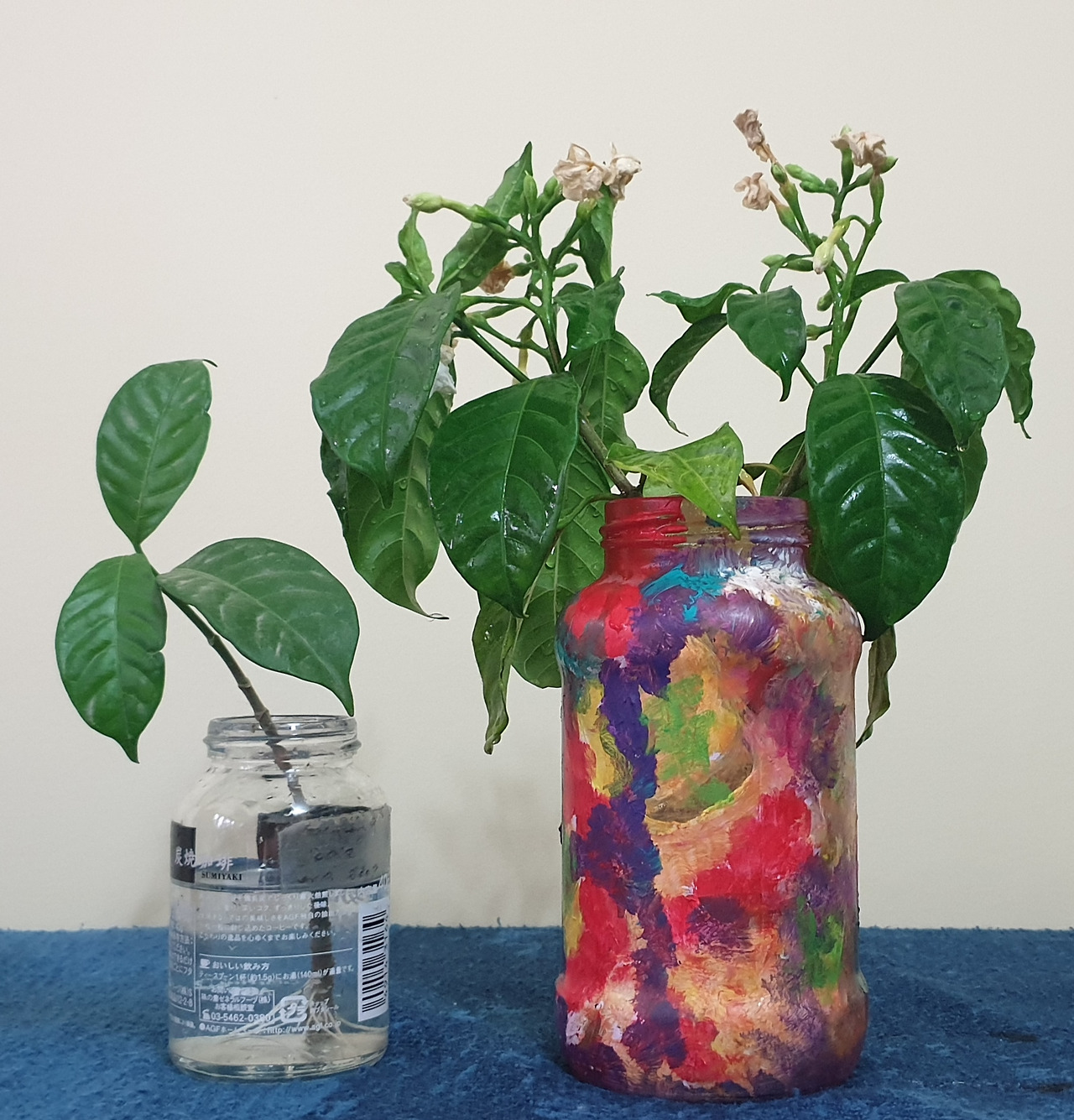 운동하다가 혹시 떨어져 있는 쟈스민 보거나 웃자란 쟈스민이 있으면 잘라서 집에 가져다가 물꽂이 해두세요. 뿌리가 돋고 하는 모습이 소소한 기쁨을 줄겁니다. 화이팅!