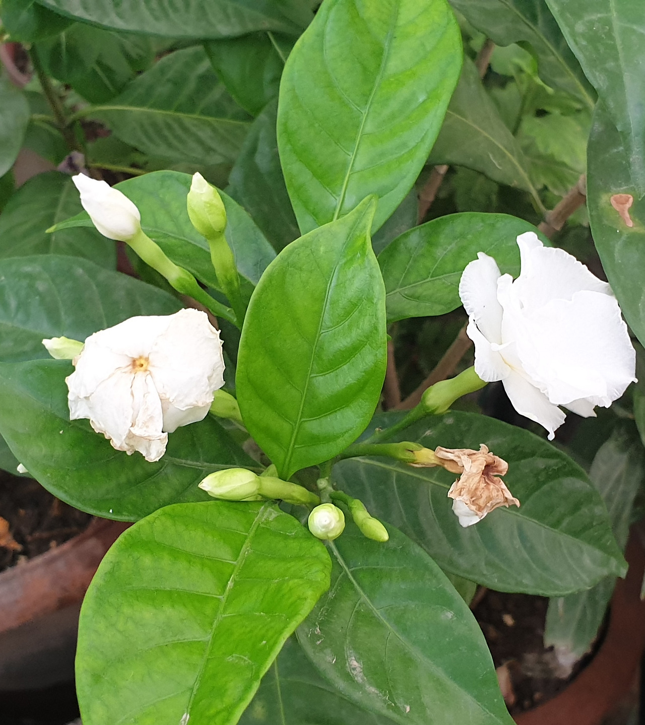 쟈스민 소개하려고 구박사를 찾아보니 색깔도 하얀색만 있는 것이 아니고 보라, 노란색도 있습니다. 이름도 다양하고요, 저는 단순히 인도에서 자주 볼 수 있고 집에서도 키우면 좋은 식물을 소개하려고 했는데... 여러 겹 쟈스민이 크레이프 쟈스민이라는 것을 확인했네요.