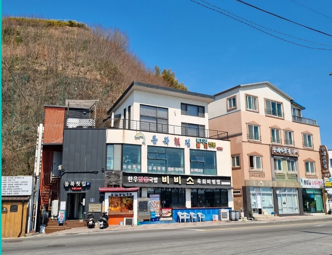 지인이 소개해 준 무한리필 대게집은 전화를 해보니 마침 대게의 공급이 안되어서 쉰다고 했는데 다른 대게집에 알아본 바로는 수요일이 대체로 손님이 적기에 단체로 쉬는 듯 하였다. 지나쳤던 한 횟집 사장님의 소개로 동북식당을 추천받았는데 특제 물회가 아주 실하니 맛있었다(16000원 보통 13000원). 반찬도 맛깔스러웠고 아메리카노까지 즐길 수가 있었다.