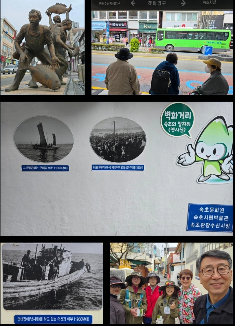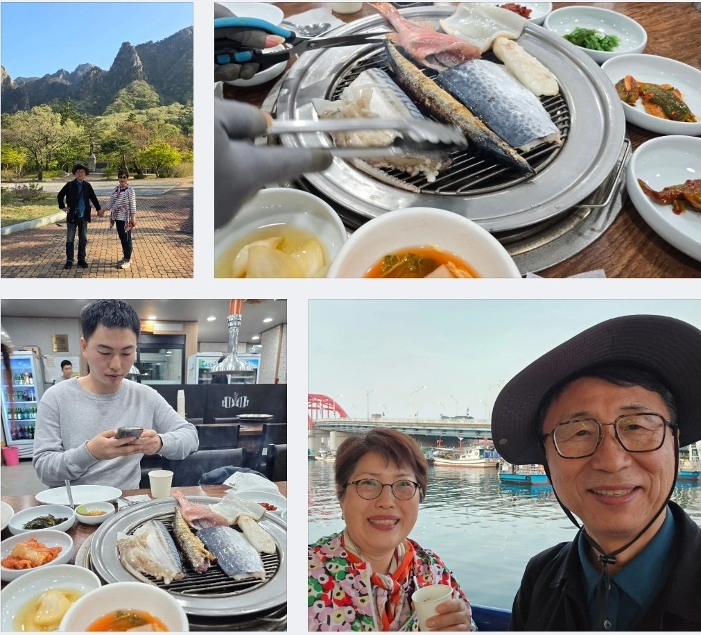 버스를 타고 돌아오는 길에 유명한 중앙시장에 들러서 88생선구이로 저녁을! 맛은 있었으나 바닷가 치고는 가격이 비쌌다. 무조건 인당 2만원. 지난번 정선 가서 생선의 가격을 대강 알고 있었는데 특별한 것도 없는 생선구이여서 처음에는 실망했지만 담당직원이 오며 가며 생선을 아주 맛나게 구워주어서 엄지 척! 점심 때도 먹자골목에서 현지인이 알려준 이선장 집에서 물회와 대구탕으로 맛있게 식사를 했던 터라 기대를 하지 않았어도 이제 속초의 맛에 대해서는 중간은 간다!ㅎ