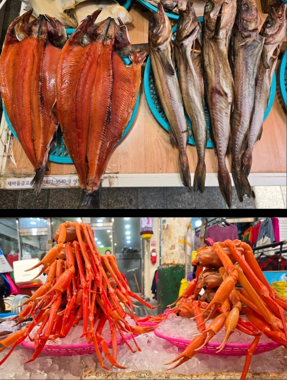 호텔로 돌아와 점심을 중앙시장에서 먹고 영랑호를 가보기로 하였다. 비가 오는 시장은 혼잡하진 않았으나 맛집을 찾아 가기가 그래서 근처의 칼국수집으로 들어갔는데 그곳의 칼국수와 북어국이 맛있었다. 동네 맛집인지 할머니 여섯분이 식사를 하고 계셨다. 또 성공!