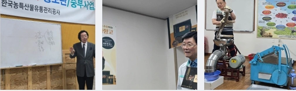 처음에는 녹용, 천마사향 그리고 구기자 건강 식품 제조사에 들러서 제품소개를 받았는데 어딜 가든 건강제품 만드는 과정을 실습으로 보여주며 소개한 이들은 한결같이 건강에 관한 해박한 지식으로 만병통치약으로 소개하기에, 사고자 하는 마음이 많이 들었다. 그러나 부담되는 가격 탓에 망설였는데... 사실 구매를 강권?하는 듯한 분위기였다. 앞좌석에서 기사님과 안내하는 분의 사적 이야기를 들은 터라 저렴하게 여행하는 댓가로 뭔가 사주어야겠다는 생각을 한터!