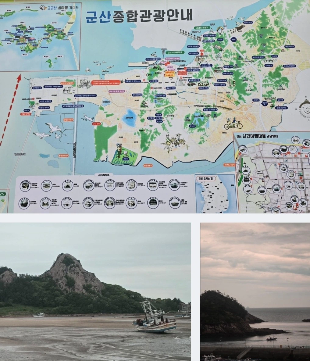 군산에 진입하자, 서해안 새만금의 광활한 간척지가 펼쳐졌다. 바다를 막은 넓다란 고속도로가 방파제 역할을 한다고... 여의도 몇배라 하던데... 잊어버렸다. 오늘 여행의 하이라이트! 작년 말도 많던 잼보리가 열렸던 곳이기도 하다. 이곳에 당도하기 위해서 10여 시간이 걸렸다.ㅎ 목적지까지 3시간이면 충분한 거리를 빙 둘러서 온 것이다. 선착장으로 가는 길은 승용차들로 빼꼭한데 연휴로 엄청난 나들이 행렬이었다.