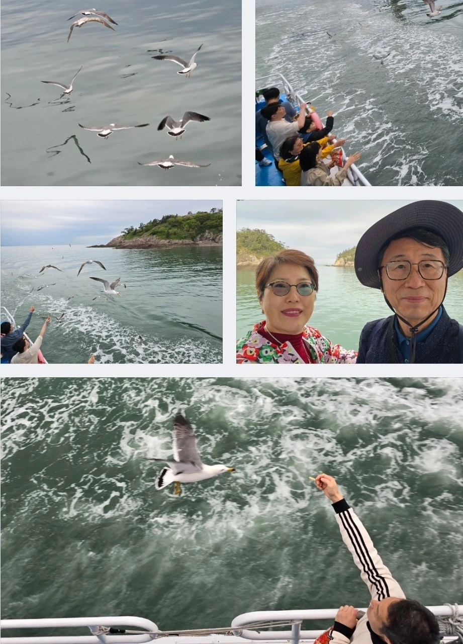 한시간 넘게 유람선을 타고 작은 섬들로 둘러싼 바다를 한바퀴 빙~돌았다. 일련의 갈매기떼가 승객들 손에 쥔 새우깡을 잽싸게 따라오는데... 텔리비에서만 보던 갈매기떼를 눈앞에서 보다니, 그들은 익숙한 날개짓으로 시선을 사로잡았다.