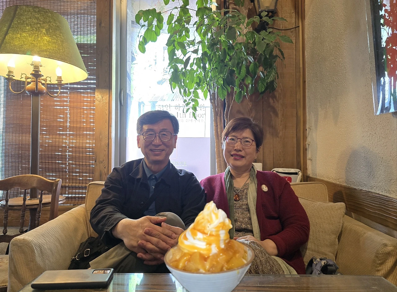 커피는 명동의 코인커피샵으로! 아들에게 아포카토의 단맛 폭탄을 선사하고 싶었고 케익과 망고 빙수를 함께 주문했다. 큰 케익은 가져가서 보관하기도 힘들고 해서 작은 치즈케익으로 축하하였다. 기다려도 이후에 따뜻한 차를 안줘서 물어보니 평일에만 준다는 것이다.ㅎㅎㅎ 몰랐네.