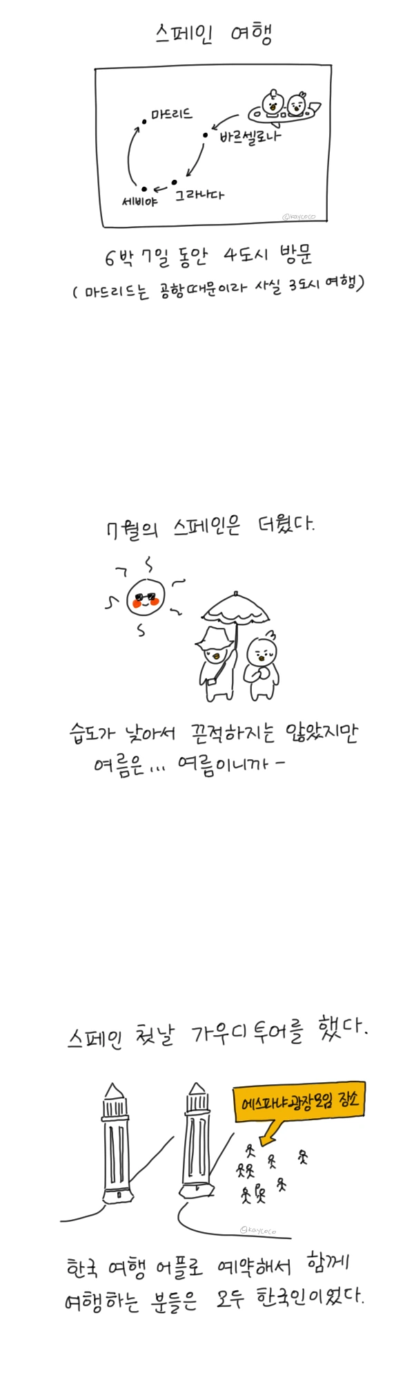 스페인 바르셀로나에 도착했다. 공항엔 밤에 도착해서 숙소에서 자고 다음날 가우디 버스 투어를 했다. 오랜만에 한국인을 만나서 엄청 반가웠다. 혼자 여행하는 분들이 많았는데 같이 이야기도 나누고 하는 걸 보니 재밌어 보였다. 물론 낯을 많이 가려서 말도 못걸어 봤지만 말이다.