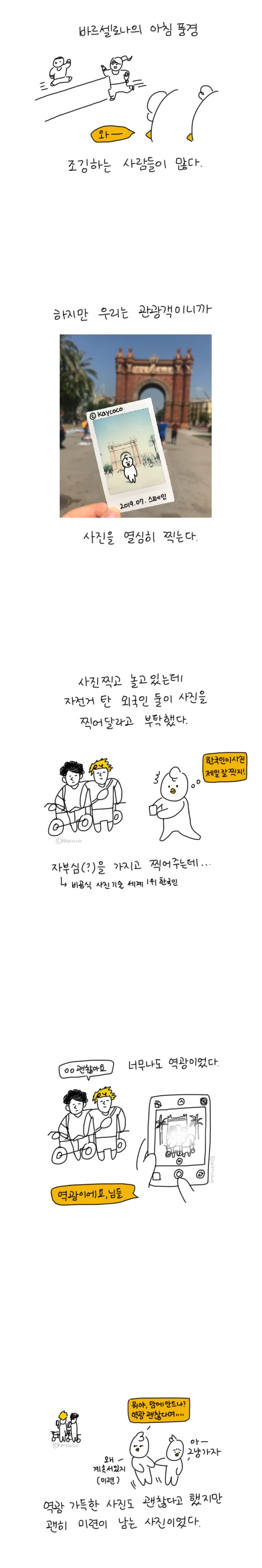 신기하다는 듯이 쳐다보며 관광객 둘은 사진 찍으며 놀고 있었는데, 외국인 2명이 다가와 사진을 찍어달라고 부탁했다.