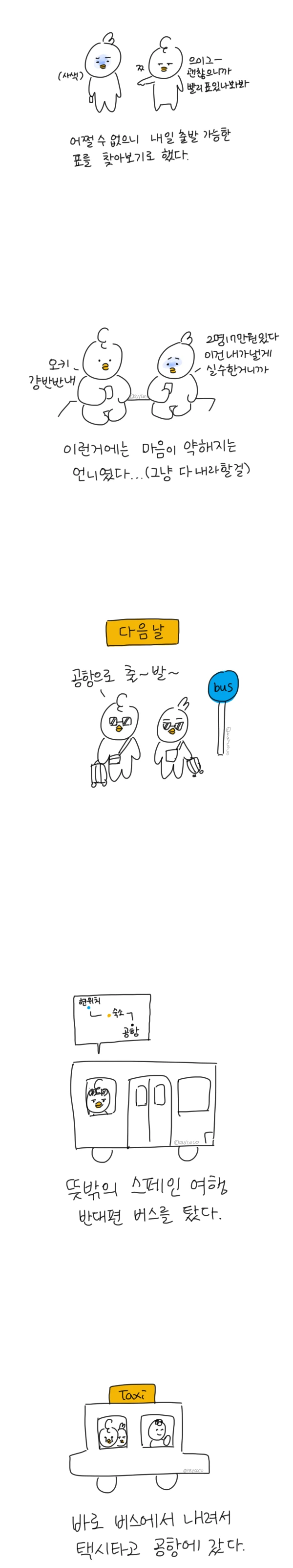 다음 날 아침. 공항에 가기 위해 버스를 탔다. 뭔가 가는 길 풍경이 시골길이라 구글맵으로 내 위치를 보니 공항과 점점 멀어지고 있었다. 현실 부정하며 5~10분 정도 더 지켜봤는데 돌아가는 게 아니라 점점 더 멀어져 바로 내려서 택시를 탔다. 택시 기사님이 비행기 시간 늦었다고 하니 빠른 길로 가주셔서 무사히 도착할 수 있었다.