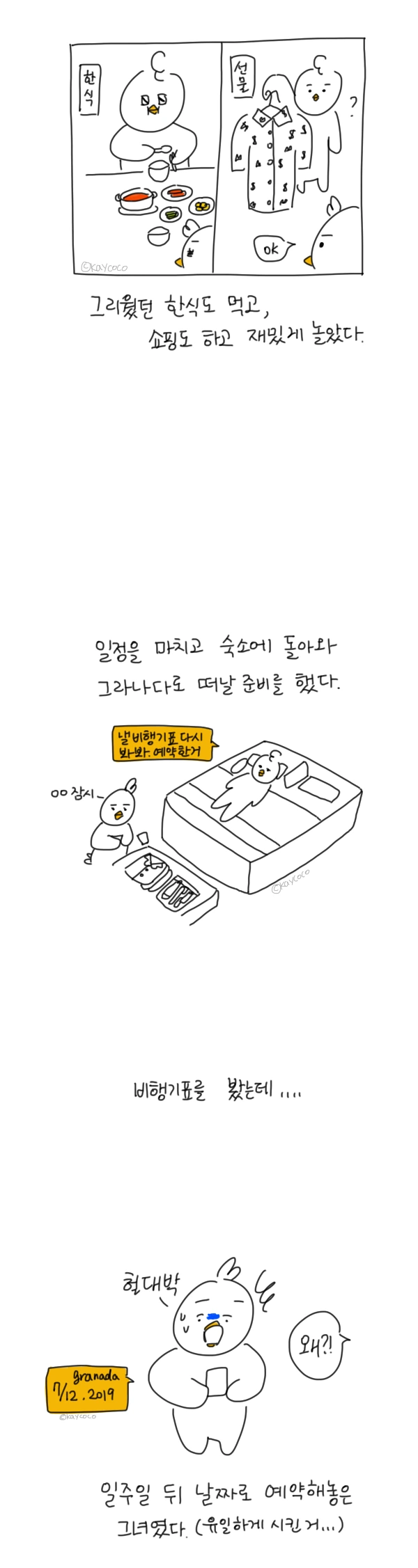일정을 마치고 숙소에 와서 그라나다로 떠날 준비를 했다. 마지막으로 비행기 표 확인하고 자려는데 아니 세상에 날짜가 일주일 뒤로 찍혀있는 게 아닌가. 유일하게 시킨 일인데 화도 났지만 동생의 당황한 얼굴을 보니 그냥 조용하게 넘어가기로 했다.