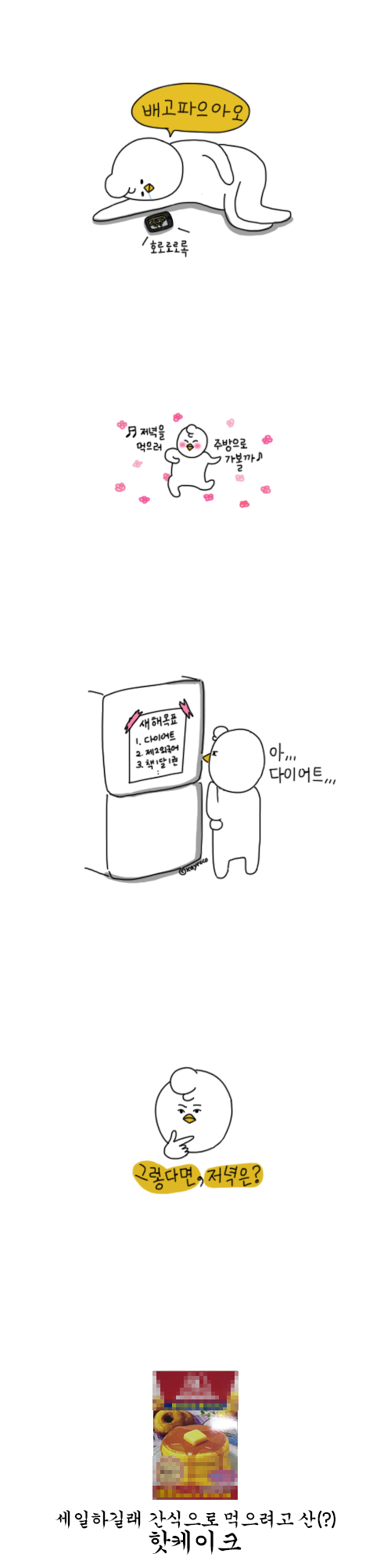 점심 먹고 간식으로 먹으려고 핫케이크 믹스를 샀는데, 새해 목표에 다이어트라는 게 있지 뭐예요. 깜빡했어요.
