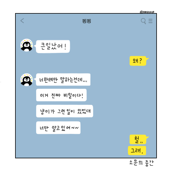 예전에 지나가다 무심코 했던 말이 변질되어서 소문난 적이 있었다. 그 소문을 누가 말해주는데 너무 황당하고 어이가 없었다. 내가 말하고 생각한 의도와 아무런 상관없이 사람들 입에 오르락 내리락 했다는 것이 화가 났다. 해결 방법이란건 없었고, 막막하고 답답할뿐이었다.
