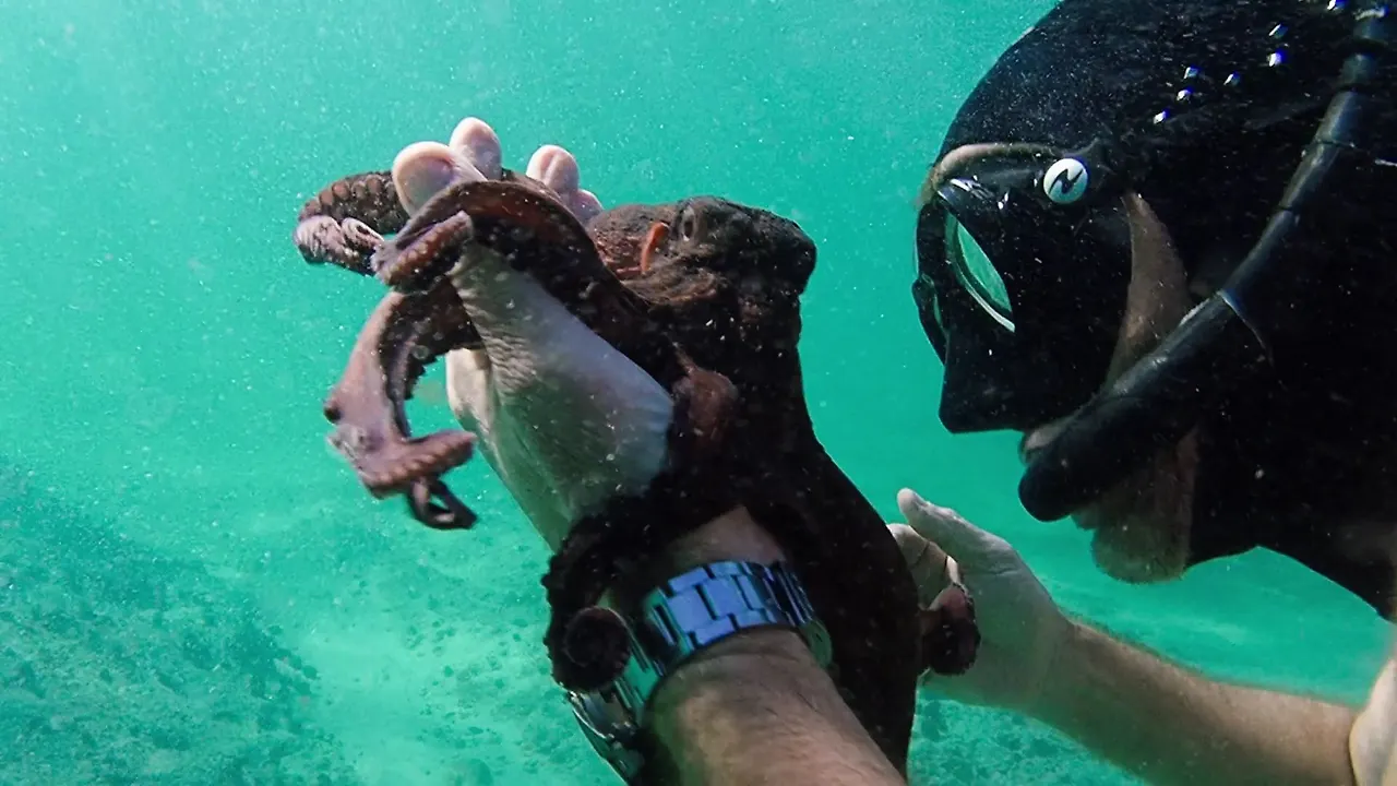 문어는 ‘재미’도 아는 모양이다. 물고기와 장난도 치고 처음 보는 크레이그와 교감하기도 한다.