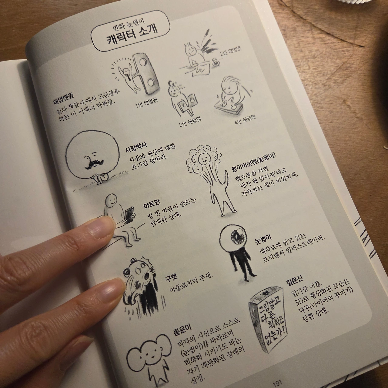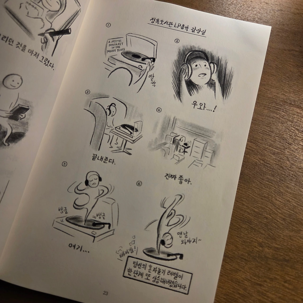 같은 책이 두 권 있어서 뽑아 들었다. 그림책인지 만화책인지 모를 책은 쉽게 책장을 넘길 수 있을 것 같았다. 30분 만에 휘리릭 읽은 책에서는 여러 가지 캐릭터가 나왔다. 그중에서 하고 싶은 게 매번 넘쳐나는 나와 비슷한 '팽이버섯맨'이 있었다. 하나에 집중하지 못하고 한 번에 여러 가지를 하면서 결국 아무것도 하지 않음이 되어버리는 상태. 요즘 내가 가장 지양해야 하는 자세로 조금씩 욕심과 조급함을 버리고 있다. 시작했으면 끝까지 해내는 힘은 노력이 필요하다. 독서도 책을 선택하고, 그 선택을 존중하는 의미는 진득하게 결말까지 알아가는 과정인 것 같다. 책을 읽으며 아티스트데이트 리스트에 넣고 싶은 '정독도서관 LP관'도 알게 되었다. 마지막 에필로그에 왜 이 책이 이곳에 두 권이었는지 알 수 있는 문구가 있었다. 렉터스라운지가 눈썹이 작가님의 작업실이었다니! 책이 만들어진 곳에서 발행된 책을 읽었다는 것도 나에게 또 다른 의미로 다가왔다.