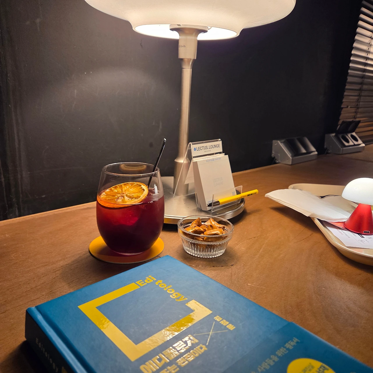 누구에게도 방해받지 않고, 무엇을 해야 한다는 의무감도 없이 나만의 온전한 시간을 보냈다. 어두운 분위기와 조용한 음악, 그리고 우디향의 디퓨져. 오감으로 느낄 수 있는 분위기는 나를 사로잡기에 완벽했다. 빨간맛을 음미하며 한 줄씩 읽어나가는 재미도, 언젠가 내가 꼭 하고 싶었던 'BookBar'의 분위기를 내기에 최고였다. 이렇게 나는 또 나와의 추억을 쌓았다. 이 추억이 나의 충만한 마음을 채우며 나를 충전해 준다. 다음 주의 아티스트데이트가 또 기다려진다.