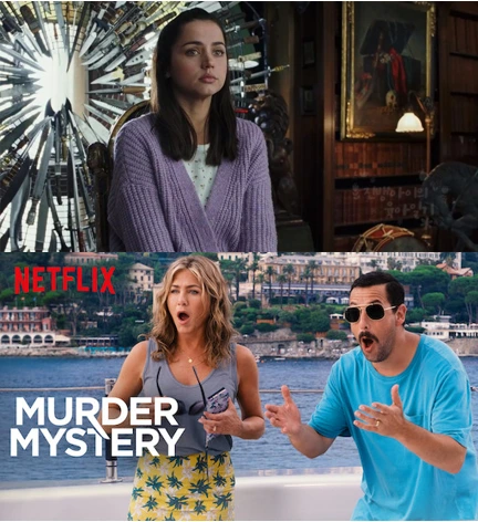 [나이브스 아웃]의 주인공, 살해당한 부호의 간병인 마르타는 가난한 이민자 출신이며 성실하고 똑똑하다. 어찌 보면 전형적인 주인공이다. [머더 미스터리]의 닉과 오드리 부부는 서민적인 푼수떼기다. 유럽에 관광간 경박한 미국인의 전형을 보여준다. 닉이 비행기 안에서 좌석(이코노미석!)을 눕히고 진상짓하는 걸 보면 남 이야기 같지 않다. 범인을 쫓다가 미국과 차선이 다른 걸 잊고 고급차라며 신나게 우핸들 차량을 잡아타는 바람에, 얼떨결에 경찰인 닉 대신 미용사 오드리가 운전하며 카레이싱을 벌이기도 한다.