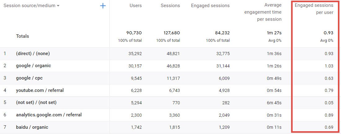 GA4에서는 참여Engagement라는 개념이 생기면서 관여하지 않은 세션은 Engaged sessions per user에 포함되지 않게 되었습니다. 지표를 하나씩 보니 어떠한 변화가 생겼는지 조금씩 이해가 되시나요?