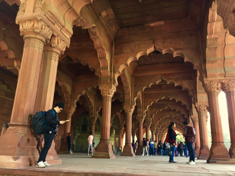 레드 포트는 영국 식민지 시절 인도가 영국군에 대항하기 위해 지은 요새다. 동서양의 건축이 조화를 이룬 돌기둥이 인상적이었다. 표를 끊기 위해 매표소에 들렀는데 오디오 가이드가 힌두어, 영어, 한국어 3가지만 있었다. 별거 아닌데 한국인으로서 조금 자랑스러웠다.