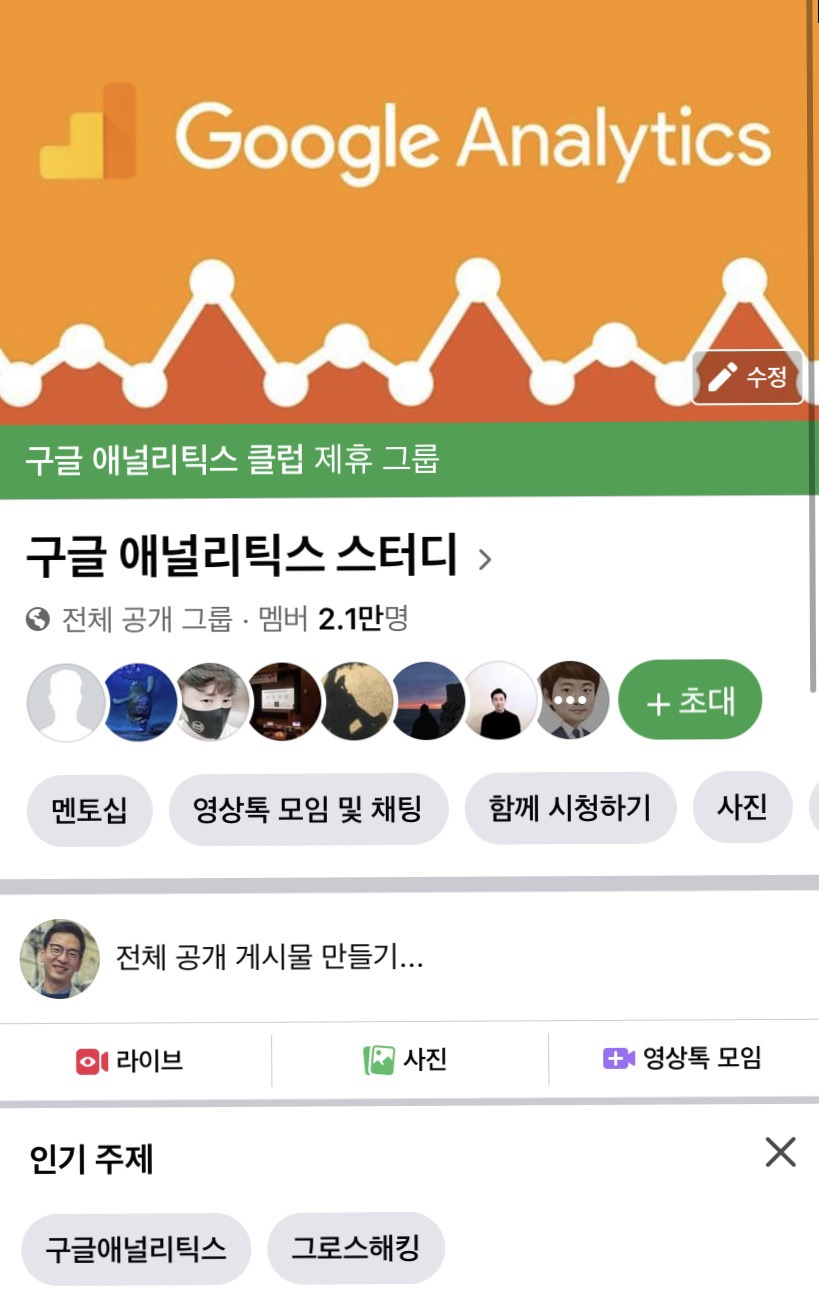 둘째로 커뮤니티 활동을 하면 업계 사람들이 나를 자연스레 알게 된다. ‘구글 애널리틱스 실전 활용법’이라는 책을 쓰기 전부터 '구글 애널리틱스 스터디'라는 페이스북 그룹을 운영하면서 내가 쓴 글과 도움이 될 만한 해외 자료를 항상 공유하며 의견을 나눴다. 지금은 약 2.1만 명이 가입되어 있고 그룹을 통해 알게 된 분들이 내게 이직 제안을 해서 면접까지 갔으나 코로나 때문에 채용이 홀딩되면서 아쉽게 입사하지 못했던 기억도 있다. (그래서 지금 회사에 다니지만..^^;)
