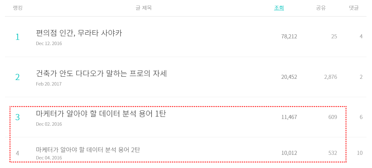 내가 썼던 글에서 가장 많이 공유가 된 글을 보니 '마케터가 알아야 할' 시리즈가 인기가 많았다. 5년 전에 쓴 글인데 아직까지 사람들이 검색해서 읽는 걸 보면 이런 식의 콘텐츠를 많이 써야 꾸준한 조회수를 확보할 수 있겠구나 싶다. 이번 글에서는 앞선 2개의 글에서 언급하지 않았지만, 그로스 마케터 내지 분석 담당자라면 꼭 알아야 할 지표에 대해 공유해보려 한다. 마케팅 분야에서 일을 할 때 수학적 사고가 뛰어나면 업무를 비교적 수월하게 할 수 있다. 마케팅의 성과는 정성적인 부분보다 정량적으로 측정되는 게 대부분이다. 지표의 정확한 의미를 모르고 마케팅을 한다는 건 일을 했는데 성과를 설명할 수 없다는 얘기와 같다. 그러니까 본인의 성과를 정확히 설명하려면 지표를 알아두면 좋은 정도가 아니라 빠삭하게 이해하고 있어야 한다.