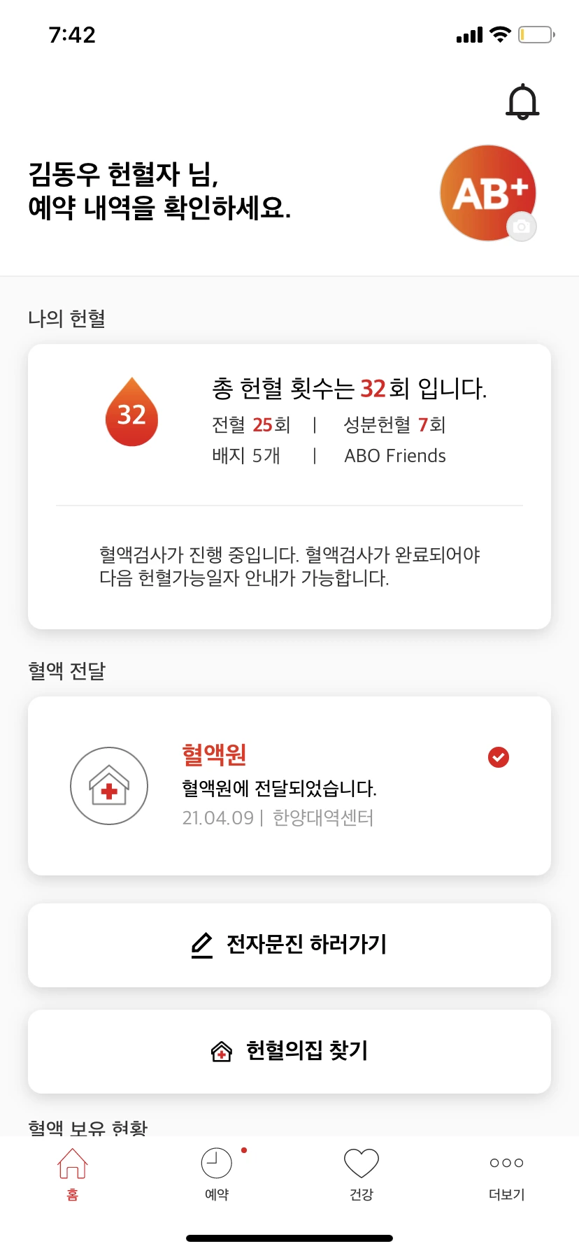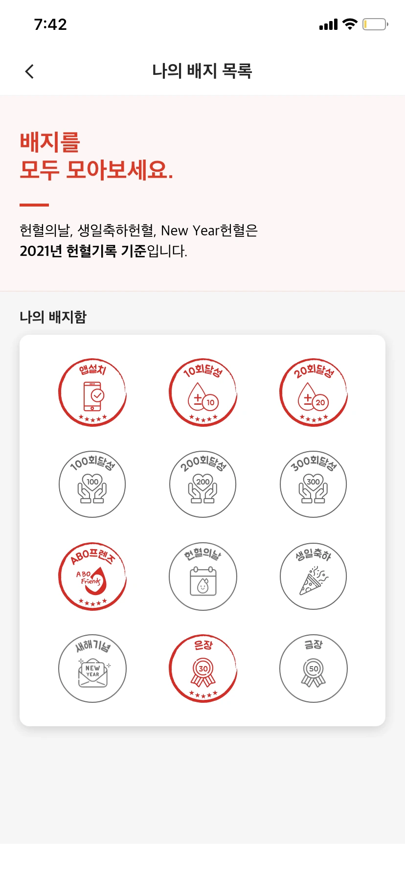 예전에도 앱이 있었던 것 같은데 앱의 사용자 경험(UX)이 많이 개선된 듯했다. 나의 헌혈 기록을 상세히 볼 수 있고, 모바일로 전자 문진을 할 수 있었다. 헌혈을 독려하기 위한 장치로 배찌 기능이 있었고 주변에 있는 헌혈의 집을 검색하는 기능도 있었다. 헌혈을 많이 하게 하려는 담당자의 마음이 앱에서 느껴진다. 한편으로는 배찌를 얻기 위한 간격이 너무 길지 않나 라는 생각도 들었다. 10회, 20회 다음에 갑자기 100회로 넘어가는 건 어떤 다른 의도가 있는 건가 라는 생각을 했고, 5회 단위로 배찌를 취득하게 하고 그에 따른 보상을 포인트나 다음에 방문했을 때 실물로 준다면 더 많은 사람들이 헌혈을 하지 않을까 싶다.