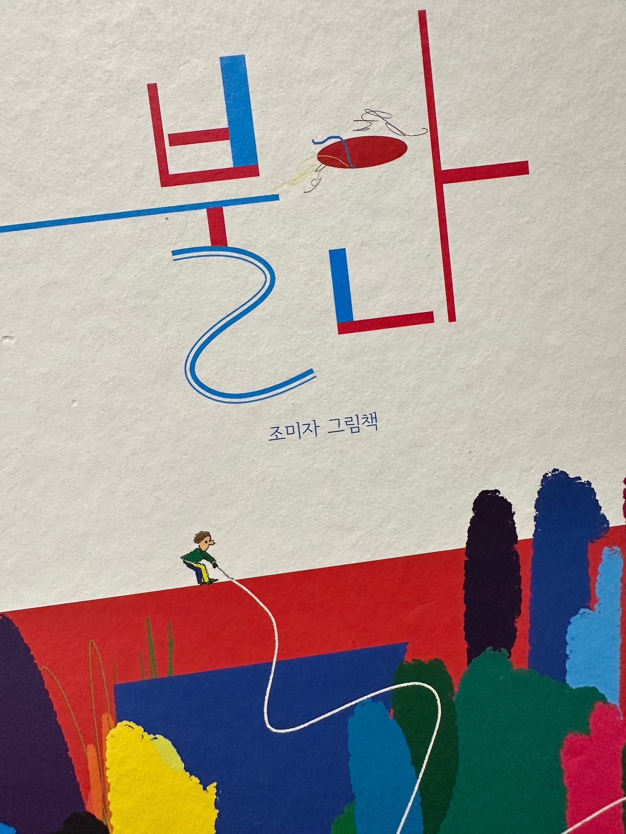 내 불안은 어둡고 음침하다. 때로는 공포와 구분되지 않는다. 녀석에게 색깔이 있다면 유채색보다는 무채색에 가깝다. 어쩌면 그래서 조미자의 그림이 마뜩잖았던 것 같다. 다양한 모양과 색깔을 배치한 작가의 의도는 투리구슬*처럼 명백했지만 영 마음에 들지 않았다. 명도와 채도가 높은 빨강과 노랑의 비중이 큰 페이지가 더욱 못마땅했다. 하나도 불안해 보이지 않았기 때문이다.