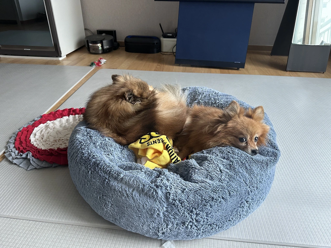 둘이 한 침대에 누워서 자는 일도 늘었다. 지금 생각해 보면 미르는 새벽이가 떠날까 많이 두려웠던 것 같다. 무탈하게 632일이나 보낸 지금은 둘이 붙어서 자는 경우가 거의 없기 때문.