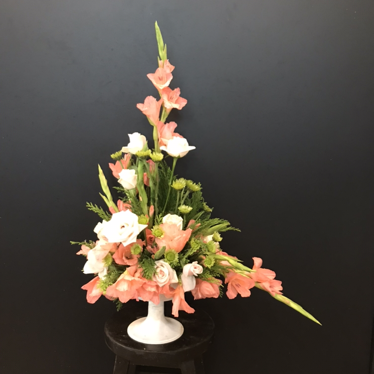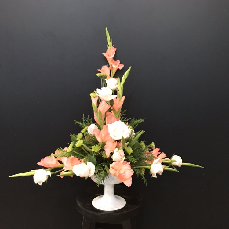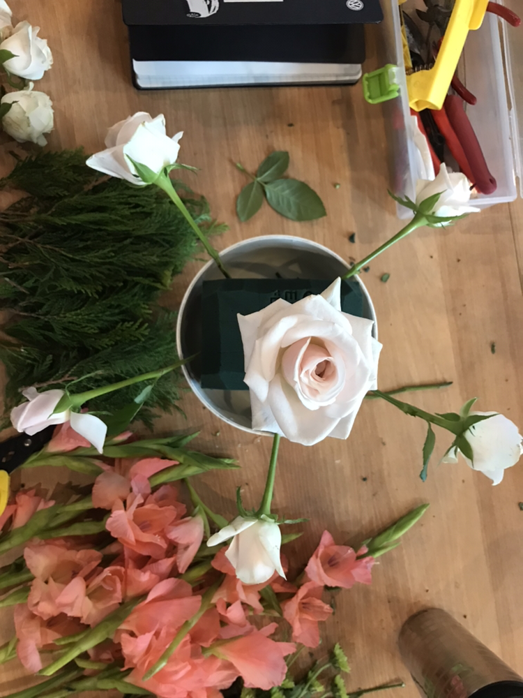 그리고 뒤쪽 중앙 기준점으로 줄기가 향하도록 (1방향)으로 꽃을 꽂아줍니다.