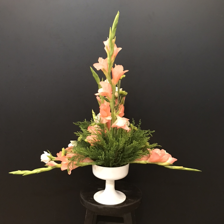 작품은 신선도(꽃을 잘 정리했는가), 형태, 구성, 줄기배열을 봅니다.