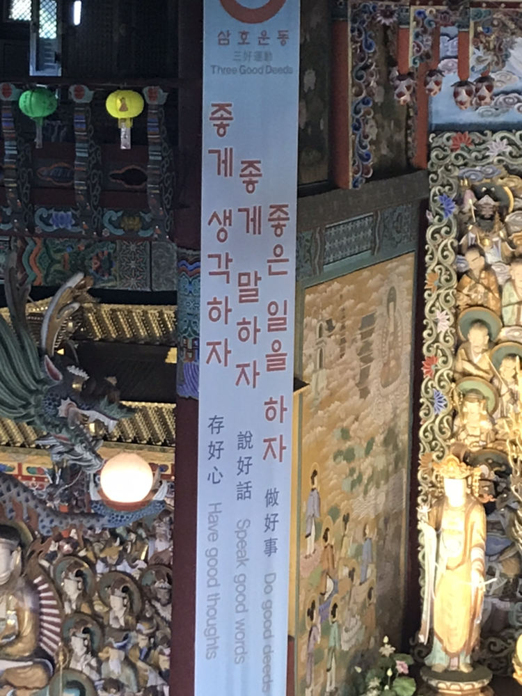 올해는 8,9,10 코스인데 축제개막식등의 공간이 필요해서 시작점이 약천사였다. 축제 개막식 등 잠시 보다가 일행등은 떠나고 난 잠시 약천사를 거닐었다. 약천사를 몇 번 와보긴 했지만 법당에 들어가 본 적은 없다.. 불현듯 법당에 들어가 보고 싶었다.