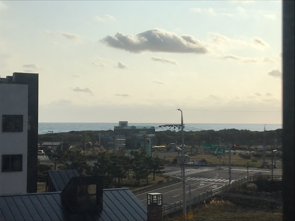 아침에 눈을 뜨니 밖에 바다가 보인다.