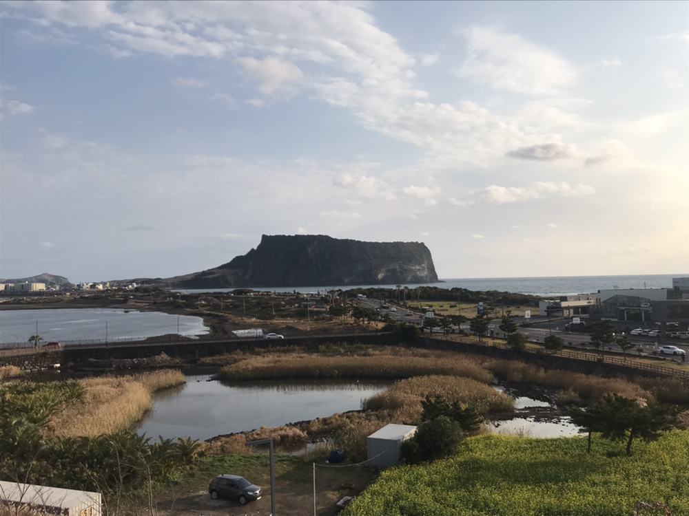 아침에 눈뜨니 성산일출봉이 눈 앞에 있었고,