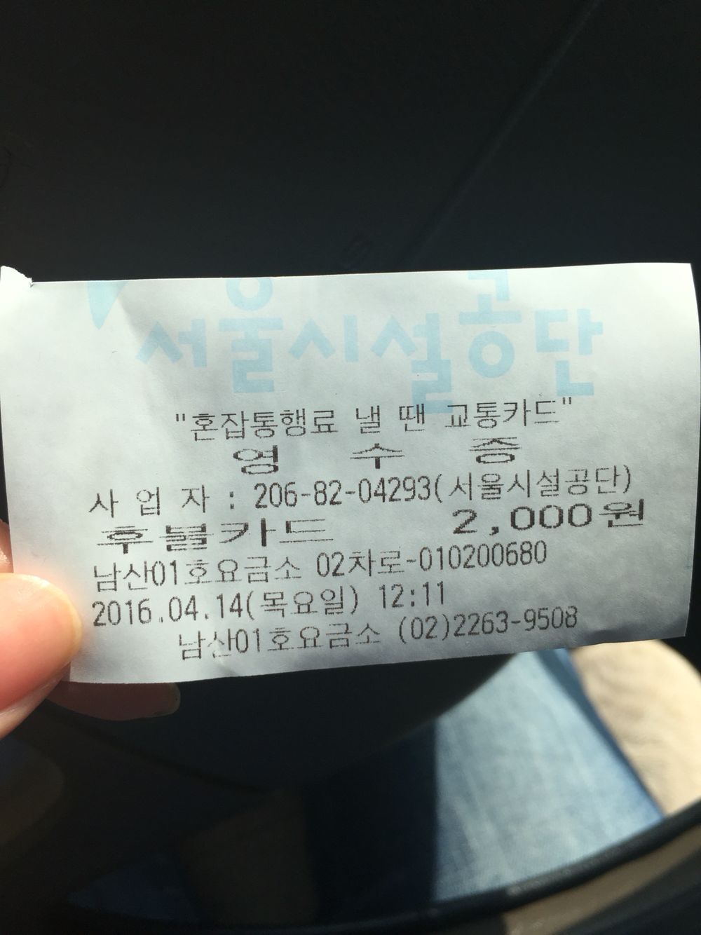 정확히 알지 못해 2,000원 내고 남산1호 터널 통과..