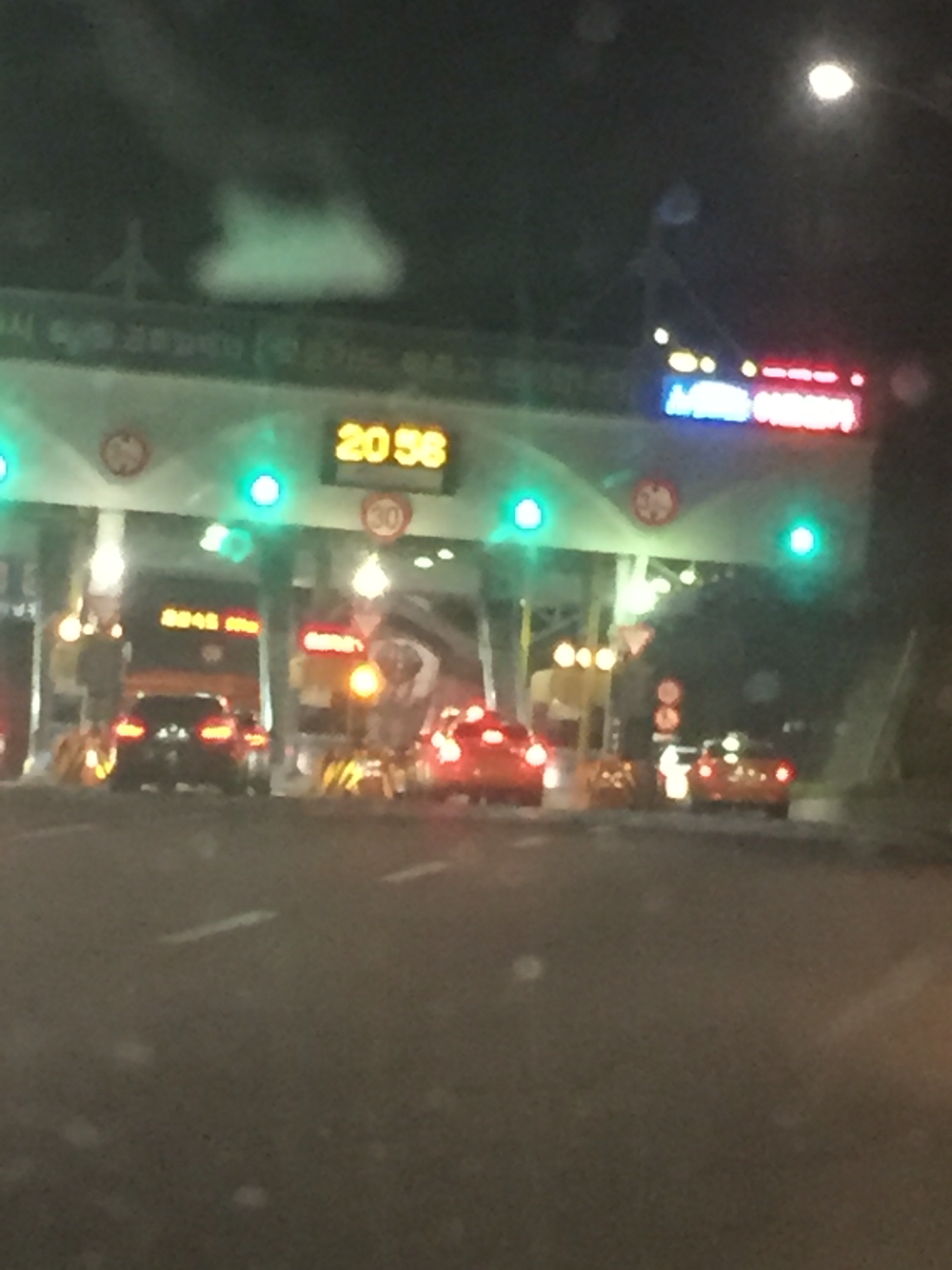 차들이 모두 위풍당당 요금소를 통과한다.