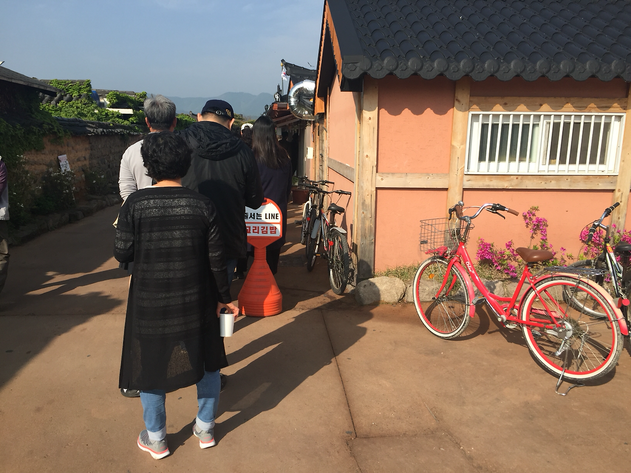 다음날 아침, 교리 김밥을 먹기 위해 부랴부랴 길을 나선다.