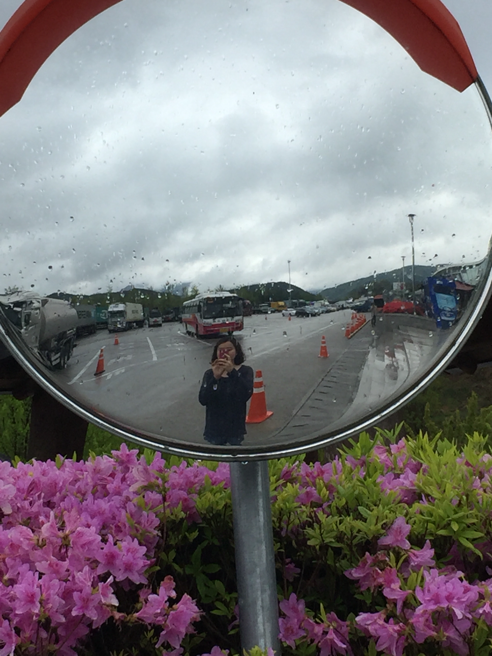 비는 점차 개이고 바깥풍경은 싱그럽고..문경휴게소에서 잠시 정차. 딱히 할 일이 없어 잠시 취미활동.