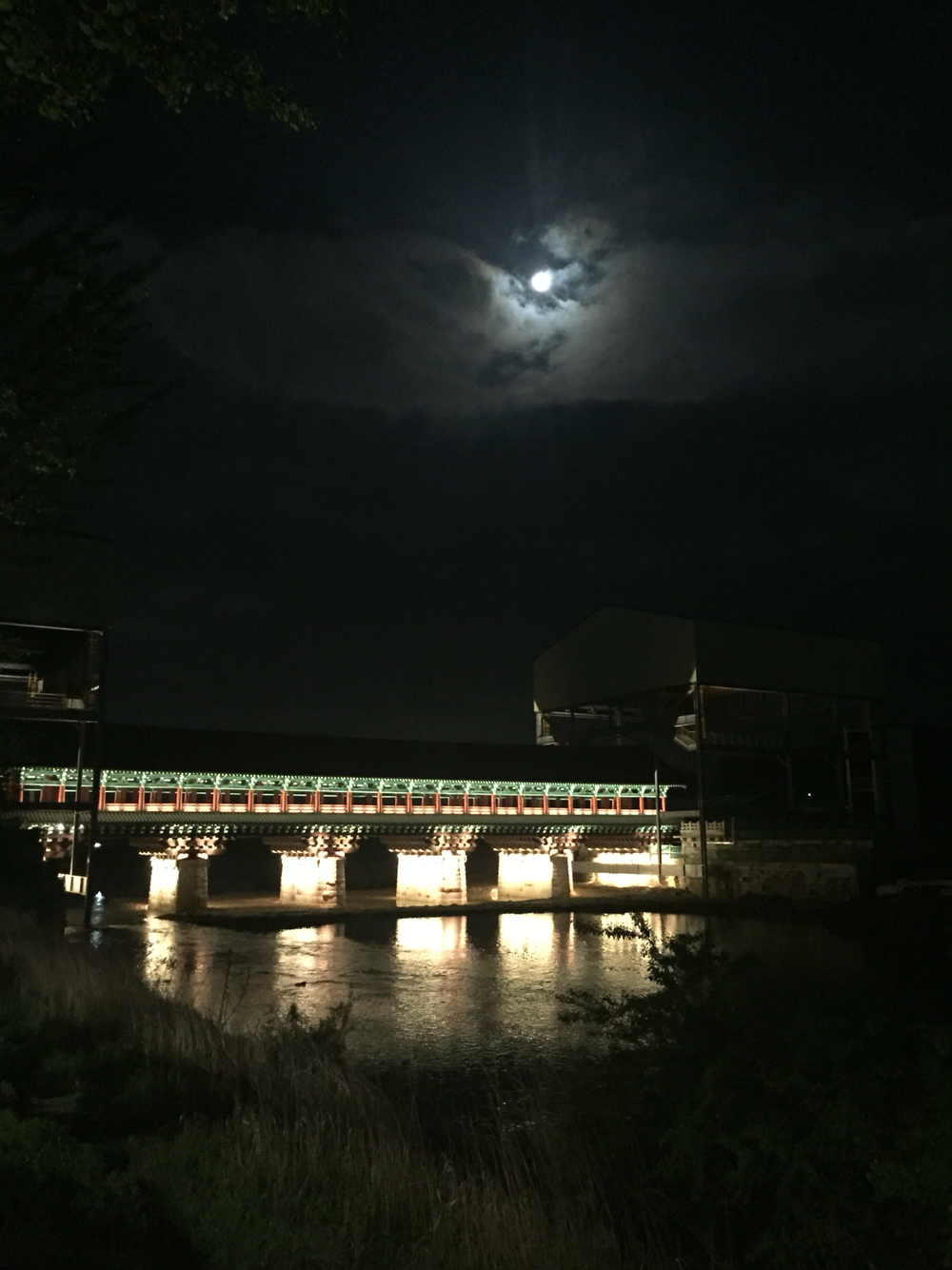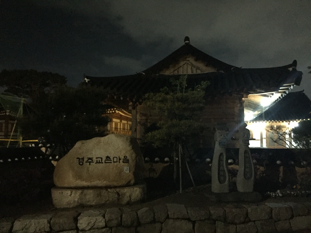 그리고 첨성대, 교촌마을을 돌아보며 야간 시티투어 종료. 교촌마을에서는 복구 중인 월정교를 보고, 교리 김밥 간판만 보고, 최부자집 대문만 보고.