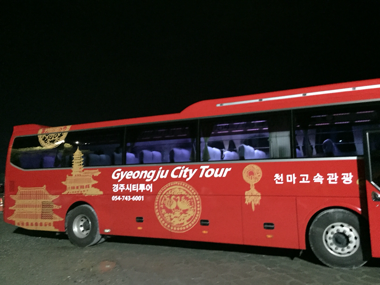 식사 후, 보문단지 힐튼호텔로 오니 그 앞에 스타벅스가 있다. 날이 쌀쌀해 내 페이보릿 음료인 두유라떼 한잔. 스벅 MD들이 경주를 품고 있었다.그리고 잠시 보문 단지 산책도 했다. 그리고 힐튼호텔 앞에서 야간 시티투어 버스 탑승!